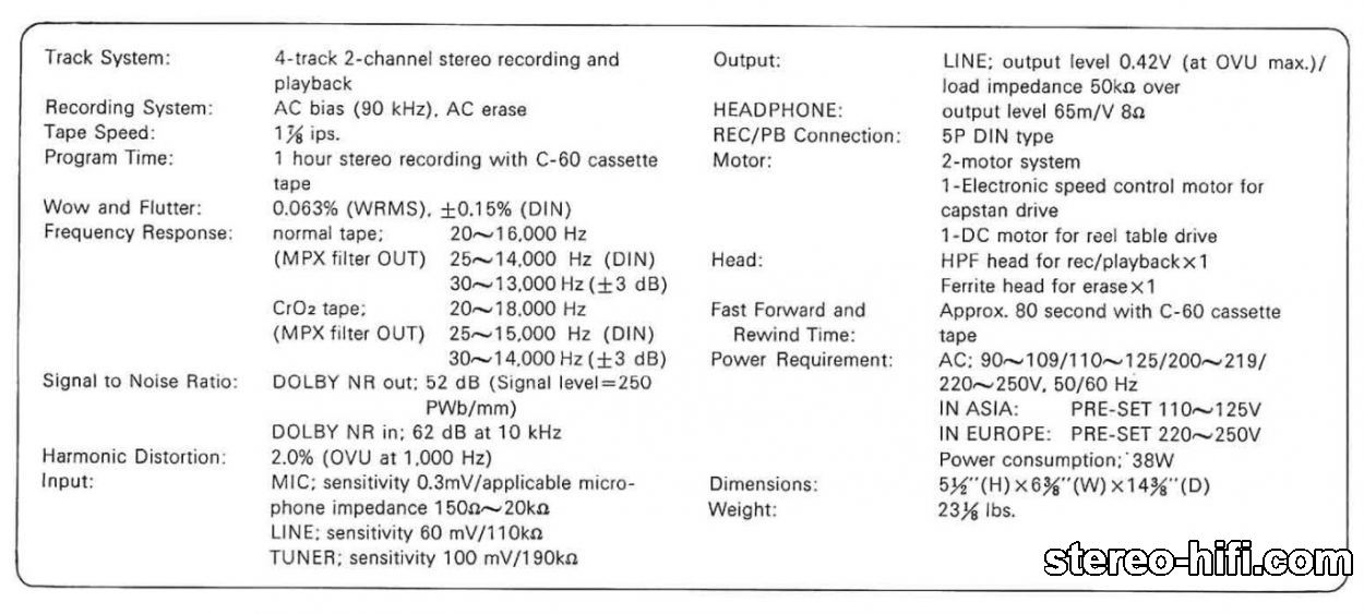Track System: 4-track, 2-channel stereo