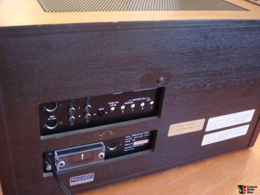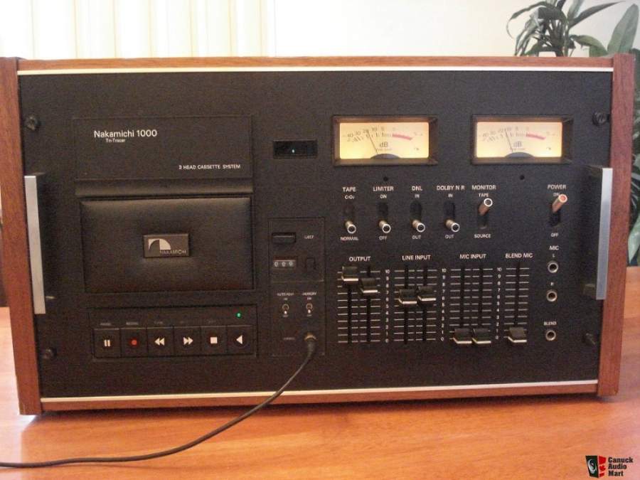 MamutDK Opublikowano 5 Lipca 2017 Opublikowano 5 Lipca 2017 Nakamichi 1000 Tri Tracer Wielki Nak. Dosłownie i w przenośni. Trochę danych z hifiengine: Type: 3-head, single compact cassette deck Track System: 4-track, 2-channel stereo Tape Speed: 4.8 cm/s Heads: 1 x record, 1 x playback, 1 x erase Tape Type: type I, CrO2 Noise Reduction: B Frequency Response: 35Hz to 20kHz (Cr02 tape) Signal to Noise Ratio: 65dB (dolby B) Wow and Flutter: 0.1% Total Harmonic Distortion: 1.5% Input: 100mV (line), 0.5mV (mic) Output: 1V (line) Semiconductors: 134 x transistors, 68 x diodes, 9 x IC Dimensions: 20-11/16 x 11-11/16 x 8-5/8 inches Weight: 39lbs Year: 1973 Od siebie mogę dodać, że jest to przykład czystej wody techniki. Mało układów scalonych. Występują na płytce sterownia panelem dotykowym funkcji. W sekcji audio same elementy dyskretne, układy Dolby i DNL zbudowane na wielkich płytkach.... Nie każdy to lubi, ale dla mnie bajka. Mało "gadżetów", za to odporna na czas technika. Jedyną wadą są głowice nagrywające. W moim egzemplarzu była padnięta i nadal takiej poszukuję..... Oto zdjęcia mojego "pięknego brzydala". Za to jak gra można wiele wybaczyć . 1