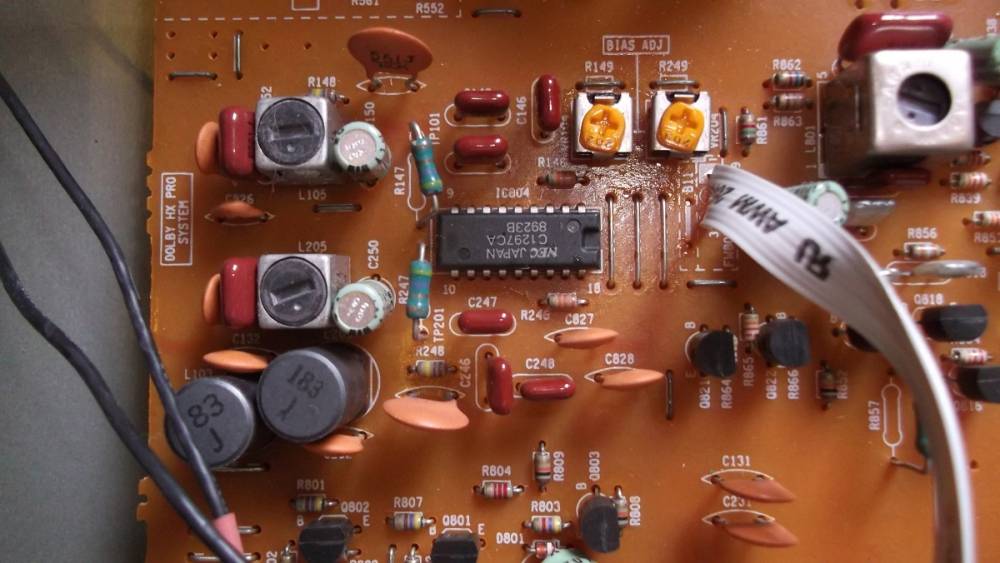 Admin sherlock Opublikowano 13 Lipca 2017 Admin Opublikowano 13 Lipca 2017 JVC TD-V521 Dziwny magnetofon. Dwie głowice i dwa wałki przesuwu. Deck jest w sumie średniakiem. Gra dość przyjemnie, wieczorem nie drażni ostrym światłem wyświetlacza - ma go w kolorze pomarańczowym, co wielu wrażliwym dekarzom może się spodobać. Mechanizm nie jest jakiś wybitny - koła zamachowe nie mają jakiejś dużej masy, są raczej cherlawe. Silnik napędza je zaskakująco cienkim paskiem. Przedni panel niestety wykonany z tworzywa sztucznego, a ja wolę jednak metalowe. Z tyłu mamy trzy komplety złoconych gniazd CINCH. Poniżej trochę zdjęć ze środka.
