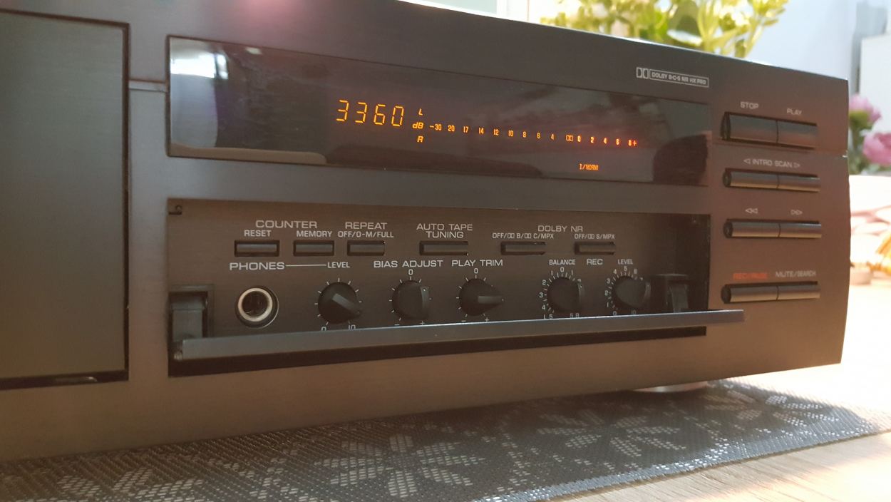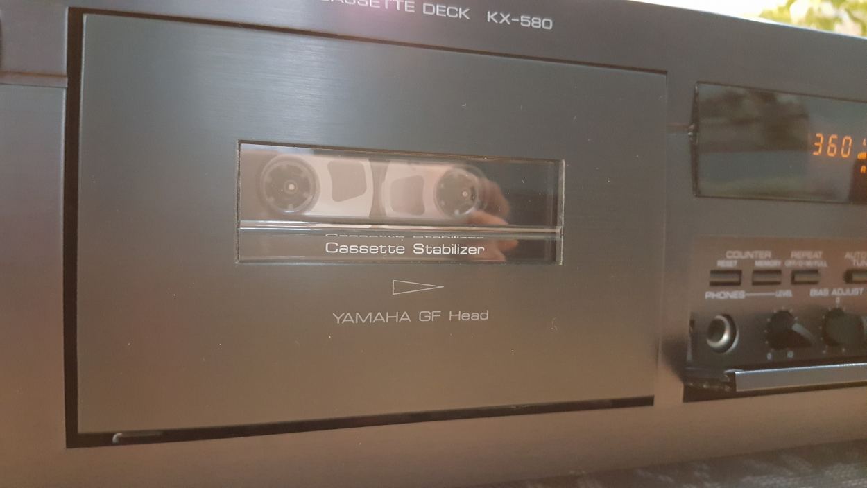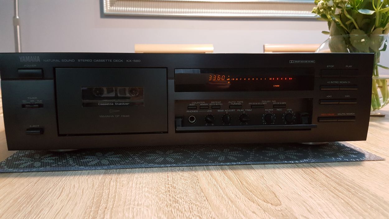 G.Moderator justified Opublikowano 30 Maja 2019 G.Moderator Opublikowano 30 Maja 2019 YAMAHA KX-580 Deck zakupiony jako sprawny dla mojego kolegi. Wybór padł na ten model bo miał być niedrogi, dobrze grać i nie posiadać elementów regulacyjnych na front panelu. Ta seria pasuje idealnie, ponieważ cały panel regulacyjny znajduje się pod klapką. Usterki: - bardzo brudny tor - uszkodzony silnik napędu capstana (panewka przednia) - rolka do wymiany - mechanizm do konserwacji Zalety kupionego egzemplarza: - oryginalne nastawy elektroniki - głowice bez śladów zużycia - ładny stan zewnętrzny, taki salonowy Deck jest dość ciekawy jak na dwugłowicowy magnetofon. Posiada kilka przydatnych funkcji. - intro scan - KLIBRACJA automatyczna i ręczna (bias). Nagrywa ton kontrolny, cofa, odtwarza i dobiera parametry, fajne jak na dwugłowicowy sprzęt. - Dolby S - głowica hard permaloy GF37 - play trim, funkcja działająca jak namiastka regulacji azymutu, potrafi podciągnąć wysokie gdy materiał nagrany jest na decku z innym skosem głowicy. To tyle na chwilę obecną. Rolka i nowy silnik zamówiony. Fotki: 1