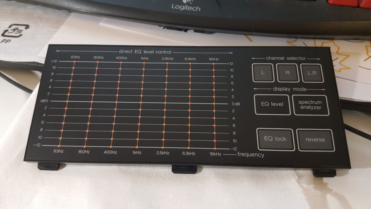 G.Moderator justified Opublikowano 28 Lipca 2019 G.Moderator Opublikowano 28 Lipca 2019 Technics SH-8046 Specifications Input Sensitivity: 1V Output Level: 1V (8V max) Gain: ± 0dB Frequency response: 10Hz to 50kHz Signal to Noise Ratio: 107dB Total harmonic distortion: 0.003% Control Range: ± 12dB Frequency Bands: 63, 160, 400, 1K, 2.5K, 6.3K, 16KHz Dimensions: 430 x 97 x 230mm Weight: 3kg Ładny. Pełni rolę analizatora widma. Jak na sprzęt rodem z lat 80, bardzo nowatorski. Posiada dotykowy panel do ustawiania parametrów korektora. Potrafi zapamiętać 4 ustawienia korekcji. 2