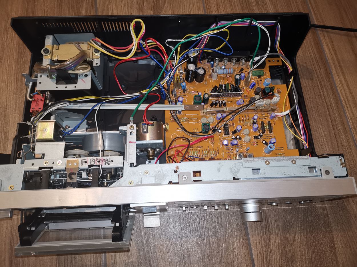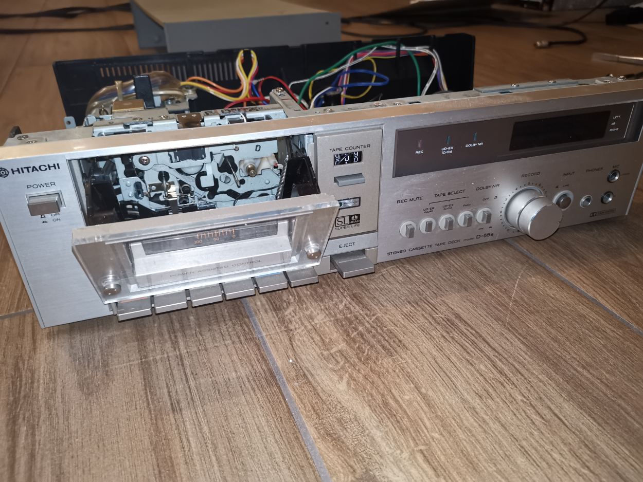 walkerfreeman Opublikowano 16 Września 2019 Opublikowano 16 Września 2019 Przedstawiam Hitachi D55S przywieziony do sklepu ze starociami w Gorzowie Wlkp. w którym go kupiłem za 70 pln. Nawet oryginalna instrukcja jest. Wszystko na ucho kręciło i działało, ale bez widocznych oznak w postaci kręcącej się kasety. Okazało się, że paski skończyły się i to dosłownie, zrobiła się smoła, którą musiałem wyczyścić. Mechanizm został nasmarowany, wymieniono paski, nadal został problem z idlerami, a w tym mechanizmie koła nawijające posiadają obydwa po sztuce. Nie mogę znaleźć zamiennika... Jak gra... chyba każdy kto posłuchałby tego Japończyka z lat 70tych byłby zaskoczony bogatym dźwiękiem, szukam takiego drugiego egzemplarza.... Co jeszcze... zakupiony sprzęt jest w b.ładnym stanie, wskaźniki oryginalne, kieszeń podświetlana, mechanizm otwierana kieszeni ciekawie rozwiązany (taki wiatraczek) deck bardzo mi się podoba, ale to kwestia gustu. fotki cd... 2 3