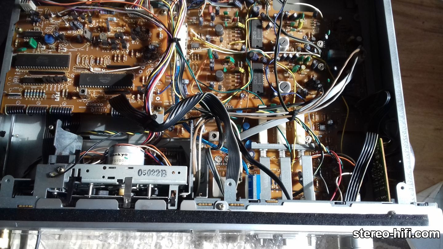 Admin sherlock Opublikowano 24 Lipca 2017 Admin Opublikowano 24 Lipca 2017 Onkyo TA-2055 Decka kupiłem na znanym portalu od sprzedającego, który okazał się nie tyle "majsterklepką" co "rzeźnikiem". W ruchu była lutownica i to nie byle jaka! Pewnie taka do lutowania rynien, sądzę tak po ilościach nakapanej cyny. Trochę danych technicznych: Type: 2-head, single compact cassette deck Track System: 4-track, 2-channel stereo Tape Speed: 4.8 cm/s Heads: 1 x record/playback, 1 x erase Motor: 1 x DD, 2 x DC Tape Type: type I, CrO2, Metal Noise Reduction: B, C Frequency Response: 20Hz to 19kHz (Metal tape) Signal to Noise Ratio: 80dB (dolby C) Wow and Flutter: 0.35% Input: 50mV (line), 0.3mV (mic) Output: 1.1V (line) Dimensions: 418 x 100 x 370mm Weight: 6.7kg Finish: silver Year: 1982 Efekty radosnej twórczości widać na powyższych zdjęciach: ułamany róg płytki sensorów i "nasmarkane" gluty cyny. Na dodatek "artystycznie" pomalowane pola na talerzykach. Na dodatek zamiast zabezpieczającej podkładki fantazyjnie zawinięty drucik na osi idlera. W wyniku powyższych "zabiegów" uszkodzeniu uległy sensory odbiciowe i w efekcie stałe działanie układu auto-stop. Szkoda, bo deck całkiem ładny ma design.
