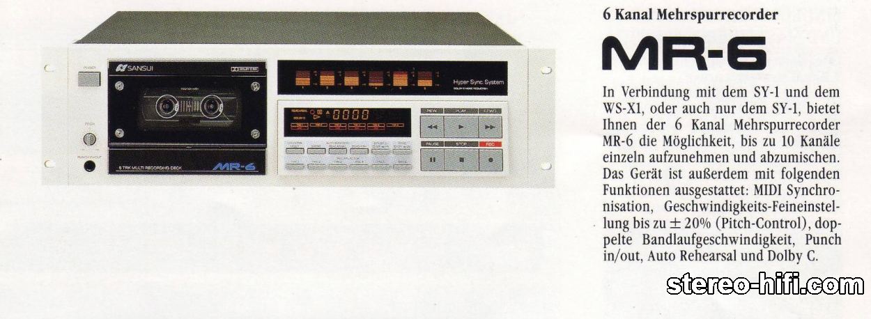 Niecerkiewny Opublikowano 12 Grudnia 2019 Opublikowano 12 Grudnia 2019 To jest chyba największa zagadka świata kaseciaków - dlaczego sześć? Nie cztery , nie osiem, nie siedem i pół - sześć jest tą liczbą, do której musisz policzyć... równie mocno zaskoczyłoby mnie też trzy... Niemniej mamy 6 tracka.... dziwaka. Raz tylko spotkałem go na markecie i od razu kupiłem za "strasznie dziwne (czyt. wielkie)" pieniądze, bo byłem bardzo ciekaw... Genialne wręcz rozwiązanie wyświetlacza, jedyne w swoim rodzaju, daje dużo radochy podczas obserwowania, można paczeć godzinami. SANSUI MR-6 Sansui MR-6 6-Track Multi Track Recorder (1990) Description The MR-6 is a 6-channel MTR that lets you, in conjunction with the SY-1 and WS-X1, or just with the SY-1, increase the number of channels to 10. Features include MIDI sync capability, 20% pitch control, punch in/out capability, double speed tape run, auto rehearsal function and Dolby C noise reduction. Specifications Type: 2-head, single compact cassette deck Track System: 6-track, 6-channel Tape Speed: 9.5 cm/s Heads: 1 x record/playback, 1 x erase Motor: 1 x reel, 1 x capstan Tape Type: CrO2 Frequency Response: 40Hz to 15kHz (Cr02 tape) Signal to Noise Ratio: 72dB Wow and Flutter: 0.06% Dimensions: 482 x 145 x 336mm Weight: 6.7kg Year: 1990 1 1