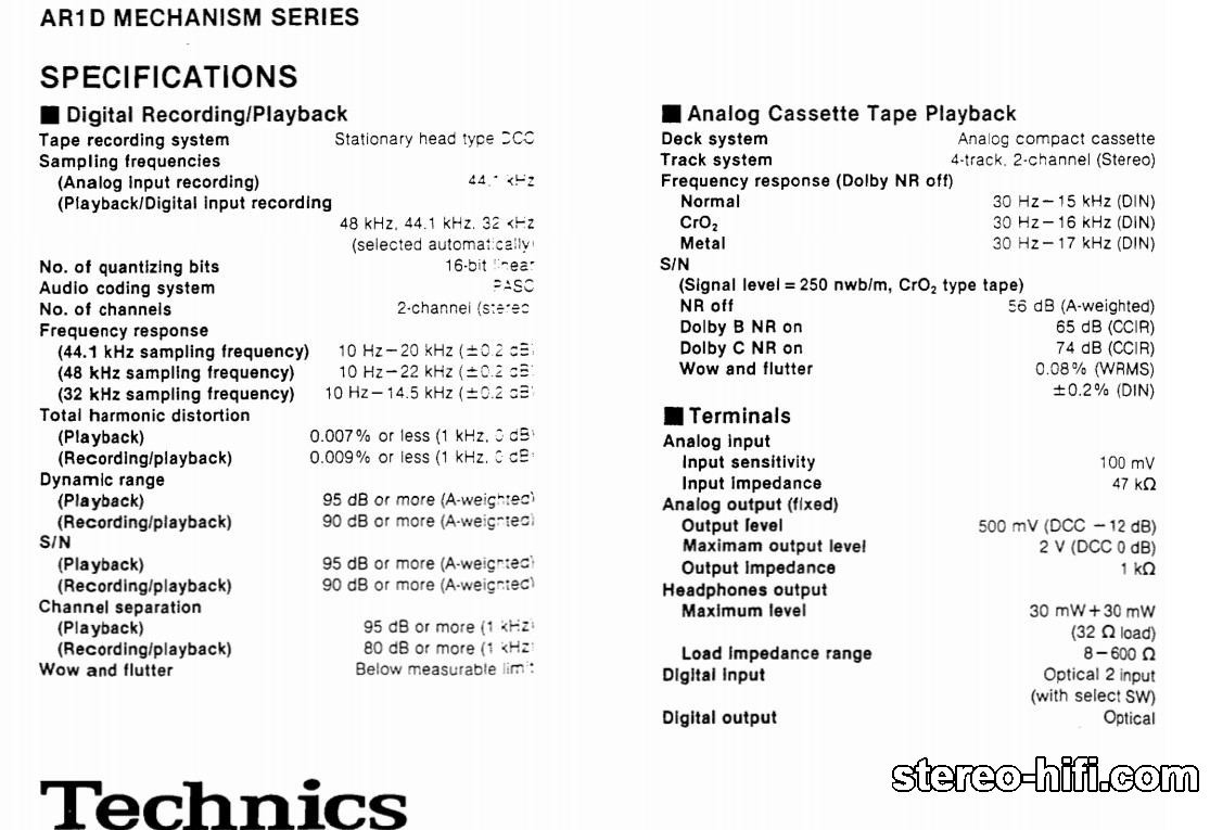 chorazy3 Opublikowano 2 Lutego 2020 Opublikowano 2 Lutego 2020 (edytowane) Technics RS-DC8 4th generation Digital Compact Cassette Deck (1994-95). Specifications: Type: digital compact cassette deck Track System: 2-channel stereo Tape Speed: 4.76 cm/s Recording Time: 90 minutes Sampling Frequency: 48, 44.1, 32kHz Frequency Response: 10Hz to 22kHz Signal to Noise Ratio: 95dB Dynamic Range: 95dB Channel Separation: 95dB Total Harmonic Distortion: 0.007% Analogue Inputs: 100mV (line) Analogue Outputs: 0.5V (line) Digital Inputs: optical Digital Outputs: optical Finish: black Accessories: remote control Jeden z najlepszych magnetofonów DCC jak powstał. Mój egzemplarz jak na razie nie jest w pełni sprawny. Mechanizm AR-1, pracuje poprawnie. Rolki wymienione, na oryginalne Panasonic/Technics RDP-0055, ponieważ stare byłe stwardniałe i rozpadał się plastikowa oś w jednej z nich. Kasety analogowe odtwarza bez problemu natomiast jeśli chodzi o cyfrowe to tylko wyświetla nr ścieżki i czas ale zero dźwięku. W trybie serwisowym pokazuje stale Individual channel error rate E21111111111 (pomimo, że głowica jest czysta i bez śladów uszkodzenia). Więc albo głowica padnięta albo elektronika na płytce read/write (tej za mechanizmem) szwankuje, być może kondensatory SMD do wymiany (typowy problem tego modelu, od tego chyba zacznę). Głowicę podobno można przeszczepić z Philips DCC 900. Edytowane 2 Lutego 2020 przez chorazy3 1 1