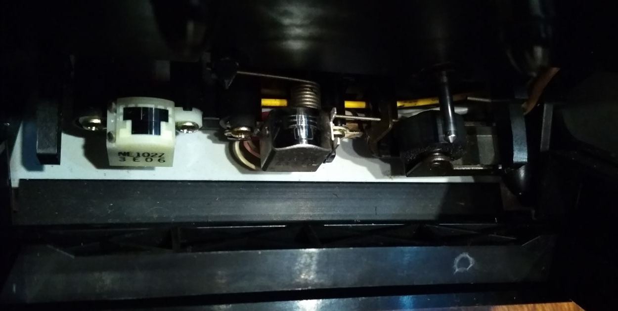 Admin sherlock Opublikowano 7 Marca 2020 Admin Opublikowano 7 Marca 2020 Najprawdopodobniej jak wspomniał Paweł brak paska lub zbyt odsunięty czujnik Hall'a od koła z magnesem. Jak paska nie ma lub wyciągnięty nie napędza koła z magnesem to efekt wiadomy. Jeśli chcesz zobaczyć zdjęcie, zaloguj się lub zarejestruj nowe konto Jeśli chcesz zobaczyć zdjęcie, zaloguj się lub zarejestruj nowe konto fot.kamil.202/elektroda.pl Zakładam, że paska nie ma bo na liczniku 0000 Na pierwszym zdjęciu widać pasek, który jet napędzany przez prawą szpulkę. Na drugim zdjęciu napędza licznik poprzez białe koło z cylindrycznym magnesem. Zmienne pole magnetyczne magnesu zmienia stany na wyjściu czujnika Hall'a. Sygnały z czujnika Hall'a wedruja do układu detekcji obrotów koła z magnesem. Póki koło obraca się to elektronika nie przerywa odtwarzania lub przewijania.