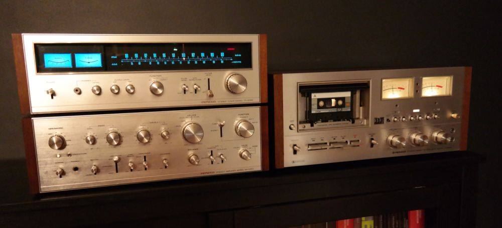 wasar Opublikowano 3 Kwietnia 2020 Opublikowano 3 Kwietnia 2020 Flagowy tuner Pioneera rocznik 1975 - 350$ Bardzo niedoceniany tuner Pioneera - zawsze w cieniu "niebieskiej serii". Może nie powala na kolana ale gra przyjemnym brzmieniem budując bardzo głęboką scenę. Średnica bardzo bogata z uwypuklonym dołem, który jest jednak lekko "rozlazły". Wspaniale wygląda w parze z Pioneer SA9100 Jako jeden z niewielu ma wbudowany wzmacniacz słuchawkowy z regulacją wzmocnienia na panelu przednim - wiec można go używać "solo" wraz z słuchawkami jako zestaw wieczorny Reception areas: FM: 87.5 - 108 MHz, AM: 525 - 1605 kHz Crosstalk attenuation:> 40 dB Selectivity: 90 dB IF attenuation:> 110 dB Equal wave selection: 1 dB Dimensions: 430 x 138 x 345 mm Weight: 8.9 kilograms FM Tuning Gangs Five 300 Ohm Binding Posts 75 Ohm Binding Posts Mono Switch Signal Strength Meter Center Tuning Meter Multiplex Filter (Hi-Blend) Stereo Lamp Muting Switch Muting Adjustment Two positions plus Oscilloscope X-Y Outputs Illuminated Dial Pointer AM Signal Strength Metering External Ferrite Antenna Antenna binding Posts 1
