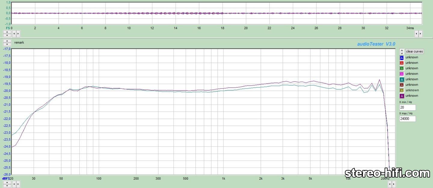 Zastanawiam się jeszcze czy sygnał testowy nie powinien być w okolicy 0 dBFS bo wygląda jakby następowało wzmocnienie sygnału., Muszę jeszcze dopracować tą procedurę bo w Audiotesterze jest bardzo dużo ustawień :)