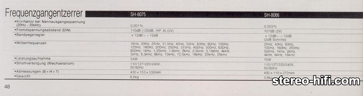 G.Moderator Jakub K Opublikowano 21 Maja 2020 G.Moderator Opublikowano 21 Maja 2020 Technics SH-8066 fot.: gear.discogs.com/ Parametry techniczne: Input Sensitivity: 1V (8V max) Output Level: 1V (8V max) Gain: ± 0dB Frequency response: 10Hz to 50kHz Signal to Noise Ratio: 113dB Total harmonic distortion: 0.003% Control Range: ± 12dB Frequency Bands: 25, 40, 63, 100, 160, 250, 500, 1K, 2K, 4K, 8K, 16KHz Dimensions: 430 x 119 x 272mm Weight: 3.8kg 1