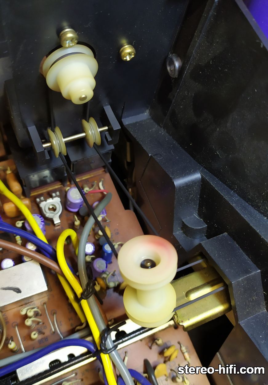 Po wyczyszczeniu kółek i umyciu oponek przekładni ciernych, autostop zaczął działać. Również funkcja Timer, bo wykorzystuje ten sam system dźwigienek. Zdecydowanie poprawiło się przewijanie, choć Rew działa wciąż bardziej kulawo niż FF. Pewnie to wina dodatkowego (w stosunku do FF) kółka pośredniego i jednego z dwóch pasków licznika - nieoryginalny. Dokładniej, jest to recepturka (nie hejtować, pliss). Pasek, który był zamontowany jest dość długi i cienki, nie mam nowego, moczy się aktualnie w Novogum.