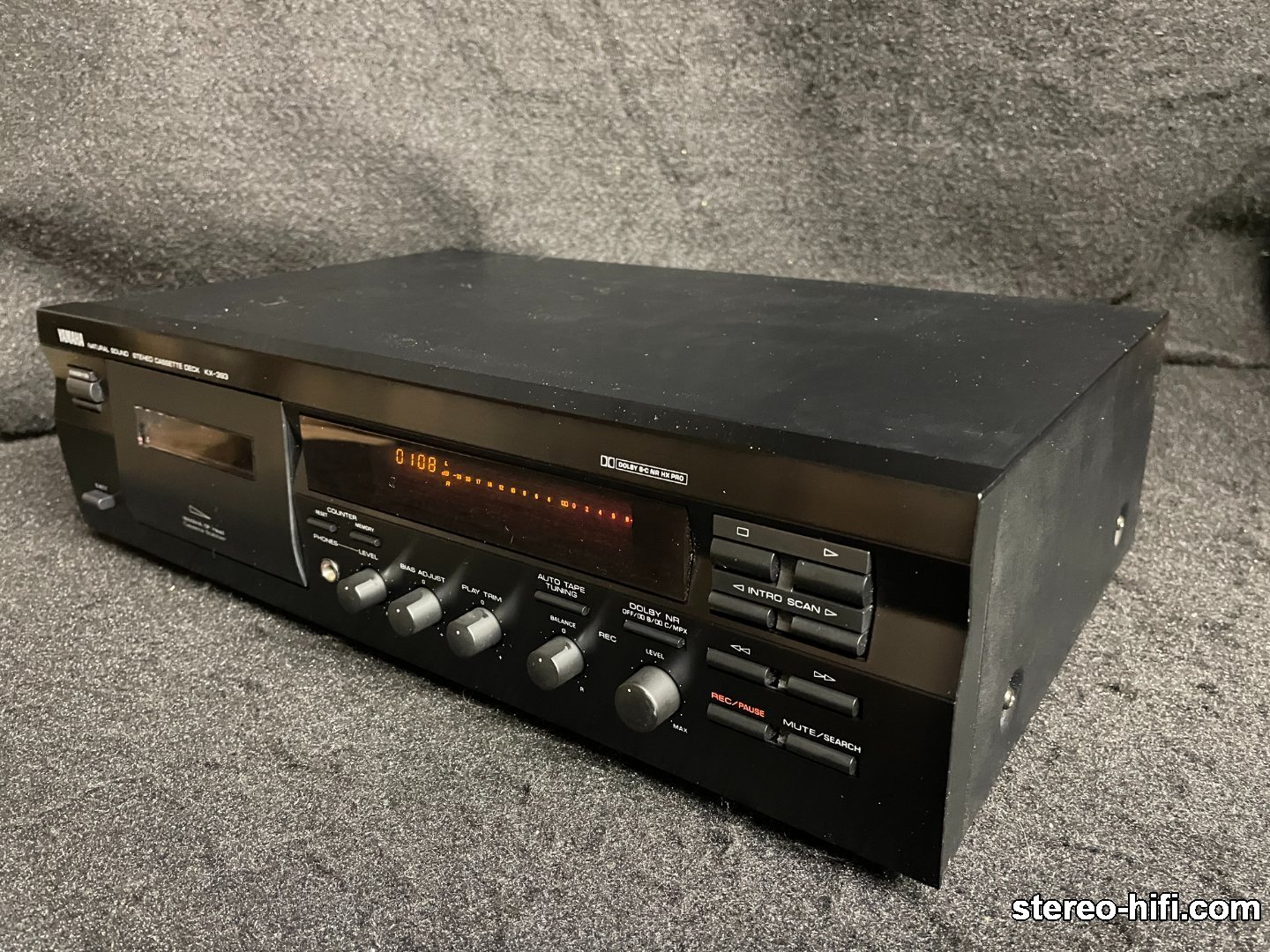 Moja pierwsza Yamaha. Podobno ostatni z porządnych produkowanych magnetofonów z epoki starożytnej. Całość sprawia dość solidne wrażenie.  Przyjemny wyświetlacz. Waży całkiem sporo jak na ostatniego Mohikanina. W środku biedy nie ma, kondensatory Elna Cerafine...