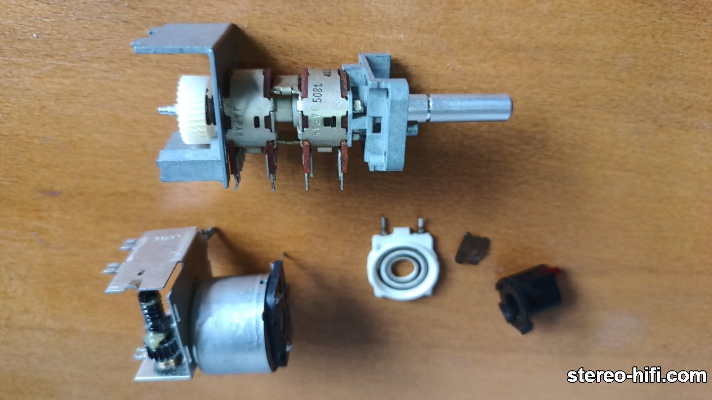 P3ndz3l3k Opublikowano 10 Października 2020 Opublikowano 10 Października 2020 Jako, że tematy takie jak w tytule wątku nie są łatwe opiszę trochę swoje doświadczenia. Temat potencjometrów już trochę opisywałem daję Link Pierwsze potencjometry które potrzebowałem wyczyścić lub jak kto woli zregenerować były od wzmacniacza DENON PMA-737 w którym pośniedziałe były także przełączniki i nie kontaktowały. Wylutowanie i rozebranie tych wyłączników to pewnego rodzaju wyzwanie (aby nic nie zgubić i połamać) ale oglądając na YT różne filmiki stwierdziłem, że nie taki diabeł straszny… Przełączniki są dość trudne do wyczyszczenia bo wewnątrz dość często są bardzo małe elementy stykowe i podczas samego czyszczenia można je powyginać albo zgubić jakiś maleńki element. Przykładowy przełącznik skorodowany wewnątrz. Wyczyszczony został preparatem do czyszczenia srebra ja akurat kupiłem w OBI. Po wyczyszczeniu dokładnie go wymyłem acetonem i nasmarowałem smarem SGB kupionym w TME. Potencjometry zdarzają się takie, że aby je rozebrać trzeba usunąć część plastikowego jakby nitu który podczas montażu fabrycznie jest roztapiany. Wewnątrz tego potencjometru są bardzo małe części Więc należy zachować ostrożność aby nie wygiąć którejś z blaszek. Złożenie z powrotem jest troszkę kłopotliwe niestety nie mam zdęcia ale ja przy rozbieraniu ich okrajam tą główkę nita plastikowego i zostaje sam środek. Przy składaniu rozpłaszczam go grotem lutownicy przez kawałek ceratki teflonowej dzięki czemu nie przykleja się do grotu. Jak będę robił taki potencjometr porobię dokładniejsze zdjęcia. O ile wyczyszczenie i nasmarowanie smarem SGB styków i bieżni potencjometru to nie problem, to już nasmarowanie osi aby obracała się płynnie z wyczuwalnym oporem to spory problem. Do tej pory nie było w zasadzie nic do kupienia w polskich sklepach. Jedynie dostępne bez problemów są oleje do dyferencjałów modelarskich, są one silikonowe o bardzo dużej rozpiętości gęstości. Niestety jak dla mnie nie za bardzo się sprawdzają do smarowania osi potencjometrów w celu nadani im płynności ruchu. Po kupieniu naprawdę wielu gęstości zrobiłem testy i niestety nie były pomyślne bo o ile sam opór był na osi to już po szybkim obróceniu olej jakby się odrywał i oporu już nie było. Opisywałem efekty testów już Link Wcześniej jednak pisałem, że znalazłem profesjonalną firmę która produkuje typowo takie smary i mają nawet sklep internetowy w UK. Lecz mnogość produktów i poziomów gęstości tych smarów a przede wszystkim cena nie pozwalały zdecydować się na zakup takiego smaru. Okazało się, że na firmę istnieje możliwość zamówienia próbek po 5gram. W związku z tym, że pracuję jako serwisant maszyn pakujących różnego rodzaju a zdarza mi się naprawiać maszyny z początku lat 80 których klienci nie chcą złomować. W starych maszynach używane są potencjometry do regulacji różnych prędkości a także regulatory mechaniczne na śrubach trapezowych to także istnieje potrzeba użycia takich smarów. Jednak nie znając stopnia spowolnienia (gęstości) dobrze by było zrobić testy więc zamówiłem próbki. Po kilku dniach zadzwoniła do mnie Pani przedstawiciel handlowy na Polskę i można było porozmawiać co to za smary dla czego są dwie grupy tych smarów. Próbki dotarły kurierem więc wykonałem pierwszy test na potencjometrze od inwertera z maszyny Wyniki są opisane tu na polskiej stronie tej firmy od smarów która została niedawno utworzona Link Do tych testów mogę dodać, że te smary o najniższej gęstości nadały by się do smarowania prowadnic czy zębatek w różnych mechanizmach co przy występujących luzach poprawiło by precyzję i płynność działania mechanizmów i zapewne głośność. Nie robiłem takich testów ale przy pierwszej nadarzającej się okazji zrobię. Być może ja się mylę ale jak dla mnie są naprawdę dobre. Minusem tych smarów dla amatorów jest ich bardzo wysoka cena. 4