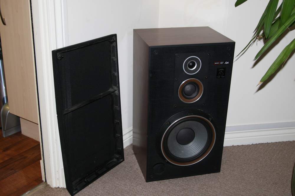 audiotone Opublikowano 3 Września 2017 Opublikowano 3 Września 2017 SONY SS-G4D Dane techniczne : Type: 3 way, 3 driver loudspeaker system Frequency Response: 35Hz to 20kHz Power Handling: 80W Crossover Frequency: 1000, 5000Hz Impedance: 8Ω Bass: 1 x 250mm cone Midrange: 1 x 80mm cone Tweeter: 1 x 25mm dome Enclosure: bass reflex Dimensions: 510 x 940 x 445mm Weight: 48kg Year: 1981 źródło : www.hifiengine.com Kolumny SONY z serii SS-Gx szukałem sporo czasu, większość modeli na rynku jest w stanie rozkładu. Poszukiwania skupiłem na modelach SS-G7 i G5 i G4. Modele G7 są dość drogie i poszukiwane, model G5 już częściej trafia się na portalach aukcyjnych. Tzn. raz do roku... I takim sposobem trafiłem na swoje G4. Pojawiły się na ebay-u uk i zdecydowałem się od ręki. Stan zewnętrzny pozostawia wiele do życzenia , ale są nie popękane i nie obite tylko okleina jest do odnowienia lub wymiany. Głośniki w pełni sprawne prócz jednego srednio-tonowego z uszkodzona membraną. Stan zawieszeń głośników nisko-tonowych określam na bardzo dobry. Kopułka wysoko-tonowa stan dobry. Zaciski były z tyłu kolumny były uszkodzone, ale będą podlegały wymianie na jakieś lepszej klasy a nie jak w oryginale sprężynowe . To będzie jedyna modyfikacja. Sprawdzę jeszcze kiedyś kondensatory i cewki w zwrotnicy, ale to na kiedyś...podczas renowacji okleiny. Brakuje tylko oryginalnych podstawek . Zaś atrapy z przody nie są porwane. Ogólnie trochę pracy i będą jak nowe .Co do dźwięku to graja z rozmachem 93dB efektywności robią swoje , z mocnym dobrze kontrolowanym basem i ładna nie męczącą górą. Bardzo przypadły mi do gustu i zajęły miejsca moim wysłużonym już Dynaudio Audience 40. Na chwile obecną tylko te zdjęcia posiadam bo muszę porobić jakieś . Jak będą nowe fotki to odrazu wkleję. zaciski ale w wersji SS-G5 w G4 są identyczne u mnie były kompletnie uszkodzone (wyrwane sprężynki i zaślepki) .