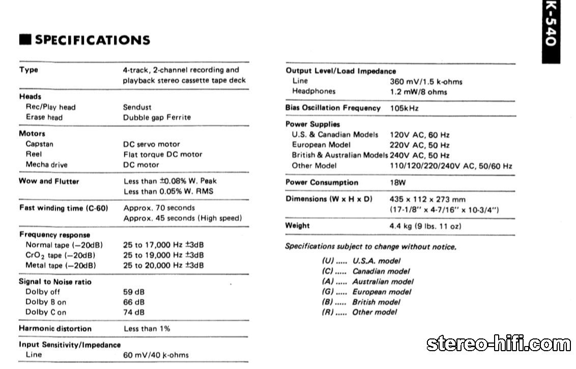 MUsher Opublikowano 20 Września 2017 Opublikowano 20 Września 2017 Yamaha K-540 Dane techniczne: Type: 2-head, single compact cassette deck Track System: 4-track, 2-channel stereo Tape Speed: 4.76 cm/s Heads: 1 x record/playback, 1 x erase Motor: 1 x reel, 1 x capstan, 1 x mechanism Tape Type: type I, CrO2, Metal Noise Reduction: B, C, HX Pro Frequency Response: 25Hz to 20kHz (Metal tape) Signal to Noise Ratio: 74dB (dolby C) Wow and Flutter: 0.05% Total Harmonic Distortion: 1.0% Input: 60mV (line) Output: 0.36V (line) Dimensions: 435 x 112 x 273mm Weight: 4.4kg Year: 1986 Oto moje Yamaszka k 540. Kupiona na giełdzie na które można kupić wszystko w tym czasem fajne decki. Dałem z nią jednie 40 PLN ! To było najlepiej wydane 40 PLN w życiu. Co mogę o niej powiedzieć? Uwielbiam jej funkcję przyspieszonego przewijania. Polega na przytrzymaniu klawisza przewijania. Co fajne i ciekawe gdy deck wyczuje że taśma ma się ku końcowi to sam wyłącza funkcję dla bezpieczeństwa. Jest też liczenie czasu pozostałego do końca taśmy polegające na przewijaniu taśmy do końca z punktu w którym funkcję uruchomimy i cofnięciu do tego punktu. Niestety licznik nie należy do super precyzyjnych. Potencjometr od słuchawek obsługuje jednocześnie dźwięk na wyjściach RCA. Teraz o dźwięku. Nie wiem czy to usterka czy to typowe dla tego modelu ale brzmi bardzo jasno. Daje sopranem po uszach. Było by to ok gdyby nie fakt że ja słucham i tak przez korektor dzwięku gadzie dodaje sobie wysokich. Może wyłączyć korekcję oczywiście, ale dźwięk z mojego egzemplarze rożni się od oryginału. Może ktoś tu powie czy to usterka czy nie? Mocne szumy też ma. 1 1