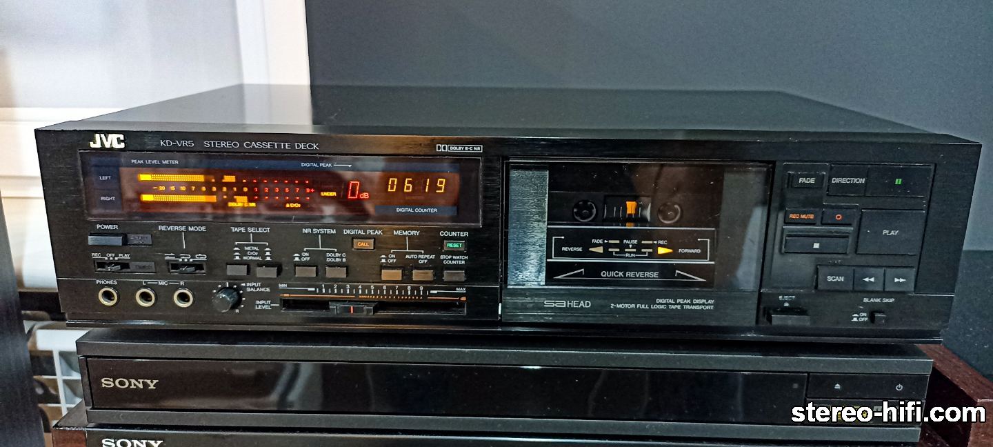 MARIUSZ H. Opublikowano 26 Marca 2022 Opublikowano 26 Marca 2022 JVC KD-VR5 Witam przedstawiam szanownemu gronu mój jedyny deck JVC. Główne cechy JVC KD-VR5 to: 2 głowice, cyfrowy licznik taśmy, automatyczny wybór typu taśmy - obsługuje taśmy typu: normal. chrom i metal. Mechanizm z auto-reversem napędzany jest paskiem. Mierniki poziomu stosowane w KD-VR5 są cyfrowymi miernikami ze wskazaniem poziomu szczytowego. Deck ma 2 wejścia do podłączenia mikrofonów ze złączem jack. Posiada złącze jack dla słuchawek stereofonicznych. Połączenie z innymi komponentami audio za pomocą złącz RCA. 2