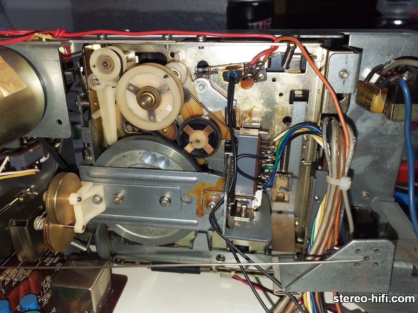 Mechanizm jednosilnikowy z napędem przewijania idlerowym z koła zamachowego, trzy paski w tym jeden licznika a drugi do spowalniacza kieszeni, który wygląda jak w TA-2080.
