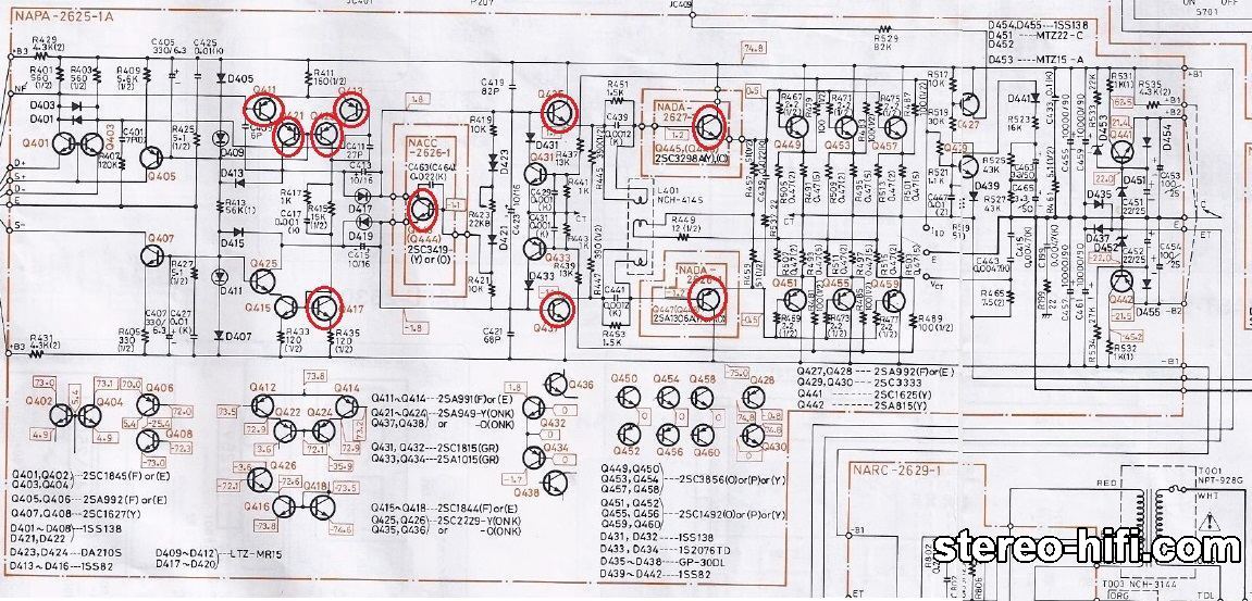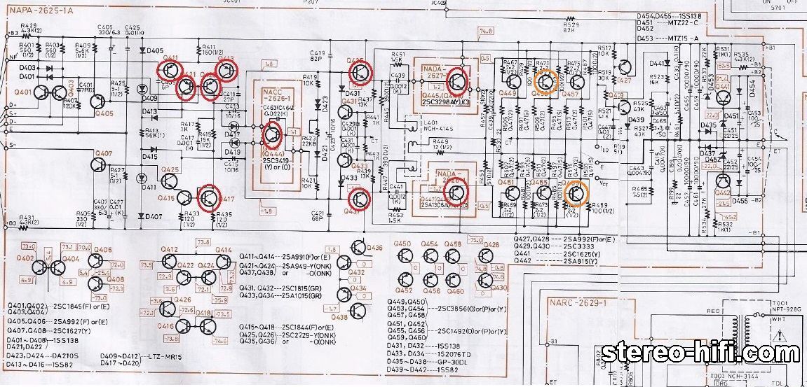 G.Moderator bilcor Opublikowano 5 Kwietnia 2023 G.Moderator Opublikowano 5 Kwietnia 2023 Onkyo M-508 Power output: 200 watts per channel into 8Ω (stereo) Frequency response: 1Hz to 100kHz Total harmonic distortion: 0.003% Damping factor: 140 Input sensitivity: 1V Signal to noise ratio: 120dB Dimensions: 465 x 185 x 426mm Weight: 25kg Power output: 200 watts per channel into 8Ω (stereo) Frequency response: 1Hz to 100kHz Krótka historia. Zakupiony jako złom użytkowy, choć za cenę niezłego decka. Pobór mocy około 950W, czyli podobnie jak A-7090 zintegrowane dual mono. Para do P-308, jeden z większych zestawów epoki. Nad nim była tylko Grand Integra M-510. Obecnie do kupienia za 30 tysi. Zdziwiła mnie tylko dwu pinowa wtyczka ale z tyłu dodatkowy zacisk masy. Za to wyjścia głośnikowe dupy nie urywają. Za to złocone wejścia. Pierwsza próba podłączenia i świeci, niestety na czerwono. Dobrze działający zmienia po chwili barwę wskaźników na zieloną. Ale kupując wiedziałem, że brak końcówek mocy. A sprzęt zaliczył już dwa serwisy, które zrezygnowały z naprawy. Ponoć wzbudza się i wywala końcówki. Ale jak ma się nie wzbudzać jak w pętlach sprzężenia widać braki elementów. Jak w innych Onkyo na płycie mamy 6 ledów sygnalizujących stan płytki wzmacniacza wstępnego. Konstrukcja typu dual mono z potężnym blokiem zasilania. Niestety wszystkie trafa po jednej stronie co przy jego masie przeszkadza w transporcie. A elektrolitów po 10000uF starczyłoby na kilka wzmacniaczy. No to teraz mam co robić, uzupełnić braki elementów i przetestować to co działa. Źródła tranzystorów i elektrolitów rozpoznane. Ale dzięki niemu zbliżam się do osiągnięcia pełnego zadowolenia. No nie, P-3030 będę chciał zamienić na P-308 do kompletu. 1 1