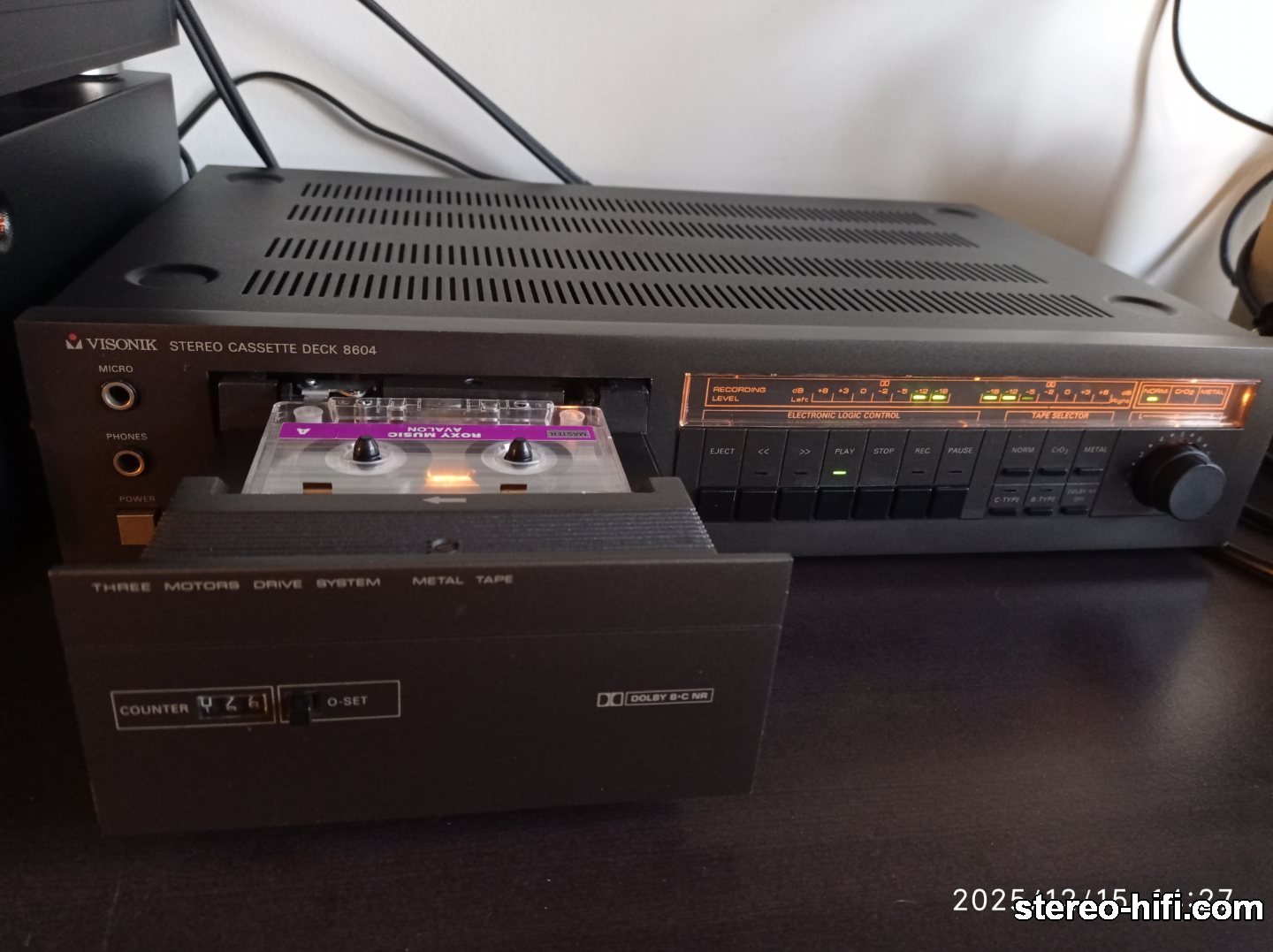ArturP Opublikowano 26 Października 2017 Opublikowano 26 Października 2017 MDS 442 Witam serdecznie. Jakiś czas temu udało mi się zdobyć na złomowisku 4 segmenty wieży diorowskiej z szufladą, tunerem, wzmacniaczem i korektorem.Pomyślałem sobie, że wyczyszczę wyremontuję i będę miał piękny sprzęt na półce.Niestety, ktoś kto ją wyrzucił na złom, doskonale wiedział co robi. Z zewnątrz nie poobijana, a w środku popękane ścieżki. Pomijam stan kondensatorów, na zewnątrz brudna jak 7-nieszczęść, a w środku czysto. NIE DO ODRATOWANIA. Całkowita odbudowa.Na fotce identyczna z moją, a moja wsadzona w najgłębsze czeluście garażu. Magnetofon w stanie rozkładu, co dziwne nic nie dłubane. Parametry bardzo przeciętne, ale na pewno są bliskie większości polskich, wieżowych kaseciaków. Dane techniczne MDS442 : Prędkość przesuwu taśmy: 4,76 cm/s. Odchyłka prędkości przesuwu taśmy: ± 1,5 %. Nierównomierność przesuwu taśmy: 0,15 %. Pasmo przenoszenia (wg DIN) nie mniejsze niż:• taśma żelazowa: 40÷12500 Hz,• taśma chromowa: 40÷14000 Hz,• taśma metal: 40÷14000 Hz. Stosunek sygnał/szum mierzony z filtrem wg CCIR/ARM: 67 dB z włączonym układem redukcji szumów Dolby C. Czułość z wejścia:• LINIA: 100 mV,• MICRO: 0,4 mV. Napięcie wyjściowe:• LINIA: 600 mV ±3 dB,• SŁUCHAWKI: 570 mV/400 Ω. Czas przesuwu mechanizmu jezdnego: ≤ 5 s. Skuteczność kasowania: 65 db przy f = 1 kHz Tłumienie przeniku między kanałami:• 30 dB przy f = 1 kHz,• 26 dB w paśmie 500÷6300 Hz. Zasilanie: sieć 220 V: 50 Hz. Dopuszczalny pobór mocy: 25 VA. Wymiary: 440x90x260 mm. Ciężar: ca 7 k 1