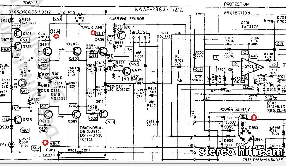 Kowalski Opublikowano 13 Lipca Opublikowano 13 Lipca Tekst z forum audiokarma: Kilka ostrzeżeń i zaleceń od osoby, która od 1973 roku zajmuje się naprawą sprzętu tranzystorowego na poziomie elementów: Zamiana elementów, takich jak tranzystory końcowe, z jednej strony na drugą to zły pomysł. Można w ten sposób łatwo uszkodzić sprawny kanał albo spalić dobre tranzystory końcowe, wkładając je do „uszkodzonego” kanału. Zawsze używaj „dim bulb testera” (czyli testera z żarówką szeregowo) albo autotransformatora z regulacją napięcia i pomiarem prądu (Variac) podczas pierwszego uruchamiania urządzenia po wymianie elementów w końcówkach mocy lub w zasilaczu. Zalecam najpierw przeprowadzenie pełnej diagnostyki i usunięcie konkretnej usterki, zanim zabierzesz się za „recapping” (czyli masową wymianę kondensatorów) czy inne elementy wymieniane przy okazji renowacji. Bardzo łatwo popełnić błąd: zamienić wyprowadzenia tranzystora, pomylić biegunowość kondensatora albo diody. Już teraz masz problem, który przeszedł z jednego kanału na oba – wymienianie innych elementów przed naprawą podstawowej usterki może tylko stworzyć nowe problemy i jeszcze bardziej utrudnić diagnozę. Zacznij od wyczyszczenia potencjometrów i przełączników (np. Deoxitem lub FaderLube), by wyeliminować możliwość zakłóceń przez zabrudzone styki – to znacznie pomaga w lokalizacji usterek. Ten odbiornik nie ma przekaźnika zabezpieczającego głośniki, ale ma przełącznik wyboru kolumn – jeśli jest zabrudzony, może powodować słabe wyjście dźwięku. (Akai AA 1030) Następnie sprawdź napięcia zasilające końcówki mocy: główne +39V i -39V, a także dodatkowe -42V dla stopnia wzmacniającego (Akai AA 1030). Użyj multimetru albo – jeszcze lepiej – oscyloskopu, jeśli masz dostęp. Oscyloskop pokaże ewentualne tętnienia (ripple), które mogą wskazywać na uszkodzony kondensator filtrujący w zasilaczu. Jeśli zasilania wyglądają dobrze, sprawdź napięcie DC na wyjściu (powinno być bliskie 0V) i ustaw prąd spoczynkowy (bias) na 30mV (Akai AA 1030). Jeżeli te wartości są prawidłowe, zazwyczaj oznacza to, że tranzystory końcowe i sterujące są sprawne, podobnie jak większość elementów w torze audio. Jeśli te pomiary są nieprawidłowe, sprawdź napięcie między bazą a emiterem (B-E) tranzystorów końcowych. Uważaj, aby nie zrobić zwarcia podczas pomiaru. Podłącz małe krokodylki do bazy i emitera przy wyłączonym zasilaniu i odłączonym urządzeniu, a następnie włącz zasilanie i zmierz napięcie. Jeden tranzystor powinien dawać 0,5–0,6V, a drugi -0,5 do -0,6V. Jeśli nie można ustawić biasu lub napięcia są niewłaściwe, wyłącz urządzenie, odłącz zasilanie i wykonaj pomiary rezystancji elementów wzmacniacza. Autor używa do tego analogowego miernika Triplett, który dobrze się sprawdza. Napięcie B-E powyżej 0,6V zwykle oznacza przerwany tranzystor. Zwarcia w tranzystorach końcowych są częste i często powodują przepalone bezpieczniki i inne uszkodzenia (np. przegrzanie) na płycie wzmacniacza. Sprawdź też rezystory emiterowe (białe porcelanowe) i inne bezpiecznikowe – powinny mieć odpowiednie rezystancje. Gdy znajdziesz i wymienisz uszkodzone elementy, uruchom wzmacniacz przez „dim bulb tester”. To nic innego jak żarówka (60–75W) wpięta szeregowo z przewodem zasilającym. Po włączeniu żarówka powinna na chwilę zaświecić jasno, a potem przygasnąć. Jeśli pozostaje bardzo jasna – masz zwarcie.