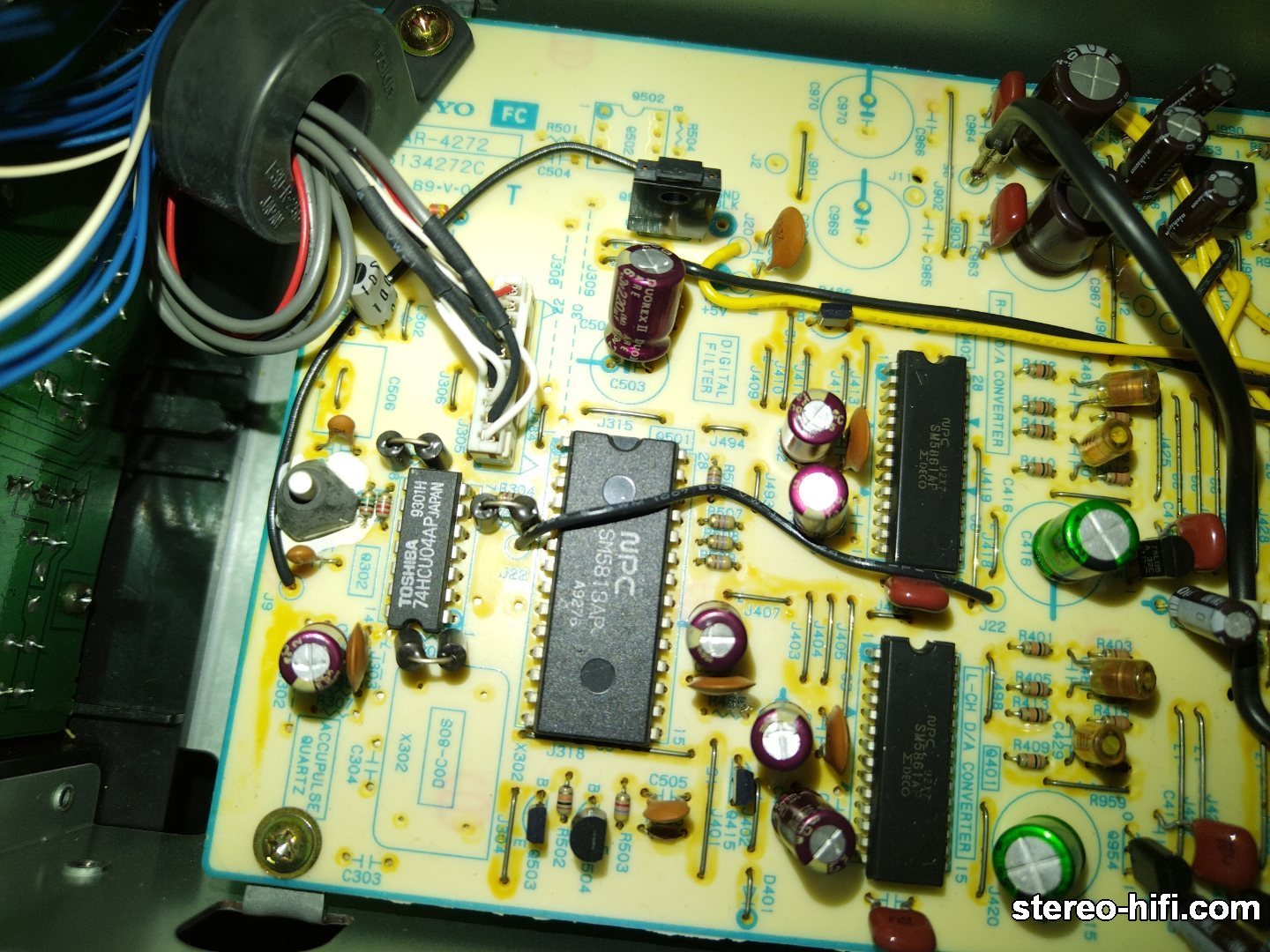 G.Moderator bilcor Opublikowano Wtorek o 18:02 G.Moderator Opublikowano Wtorek o 18:02 ONKYO DX-706 zdjęcie tymczasowe bez frontu. Front w regeneracji. Disc format: CD Digital converter: 2 x SM5861AP, 1 bit, 8 x oversampling CD Mechanism: SPU3011 Frequency response: 2Hz to 20kHz Dynamic range: 100dB Signal to Noise Ratio: 110dB Channel separation: 110dB Total harmonic distortion: 0.002% Line output: 2V Digital connections: optical Dimensions: 445 x 130 x 364mm Weight: 8kg Accessories: RC-217C remote control Po wyczyszczeniu lasera działa, jak dobrze to się okaże po użyciu zdartych płyt. No i parę kropel oliwy na łożysko spindla. Generalnie jak nie słychać cykania przekaźnika to odtwarza bez ścinek. Zakupiony na części ale to się okaże. O dziwo miał układ blokady lasera przykręcony do spodu obudowy. Zrobiłem próbę renowacji i jest obiecująco. Zamaskowałem napisy taśmą i szlif 600. Potem pędzelek i wazelina w spreju dla zamaskowania napisów. Może nawet za grubo i wystarczy WD albo coś tłustego. W całości Widać zamazy po lewej, będę poprawiał. Bo jak tylko trochę lakier siądzie to wacik z IPA i zmywamy wazelinę. Okienko IR szlif 500/3000 i wymaga polerki. Panel klawiszy też do poprawienia chociaż jest o niebo lepiej. Recenzji nie będzie bo gra tak samo sucho jak inne z tej serii. W środku jak widać jest miejsce na dodatkowe elementy. 6850-706/6870-708 różnią się jeszcze dodatkową sekcją zasilacza. 2