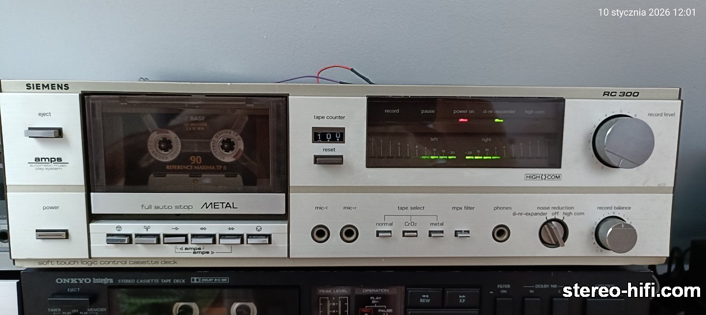 mirko Opublikowano 8 Stycznia Opublikowano 8 Stycznia Siemens RC-300 W ręce wpadł mi nowy nabytek. Dość nietuzinkowy. Siemens RC 300. Może i nic specjalnego ale za to coś oryginalnego za jedyne 100 zł z portalu. Kupiłem żeby coś kupić. Tak mnie zaciekawił, że od razu wziąłem sie za rozkręcenie mechanizmu w celu dobrania się do paska, który się niemiłosiernie wyciągnął. Czy może ktoś dysponuje instrukcją bądź serwisówką? Zwykły dwugłowicowiec ale za to z systemem HighCom i jakimś dnr-em podejrzewam Dolby B. Coś zalatuje mi on produkcją Sanyo, zresztą ma kilka scalaków tej firmy. 1