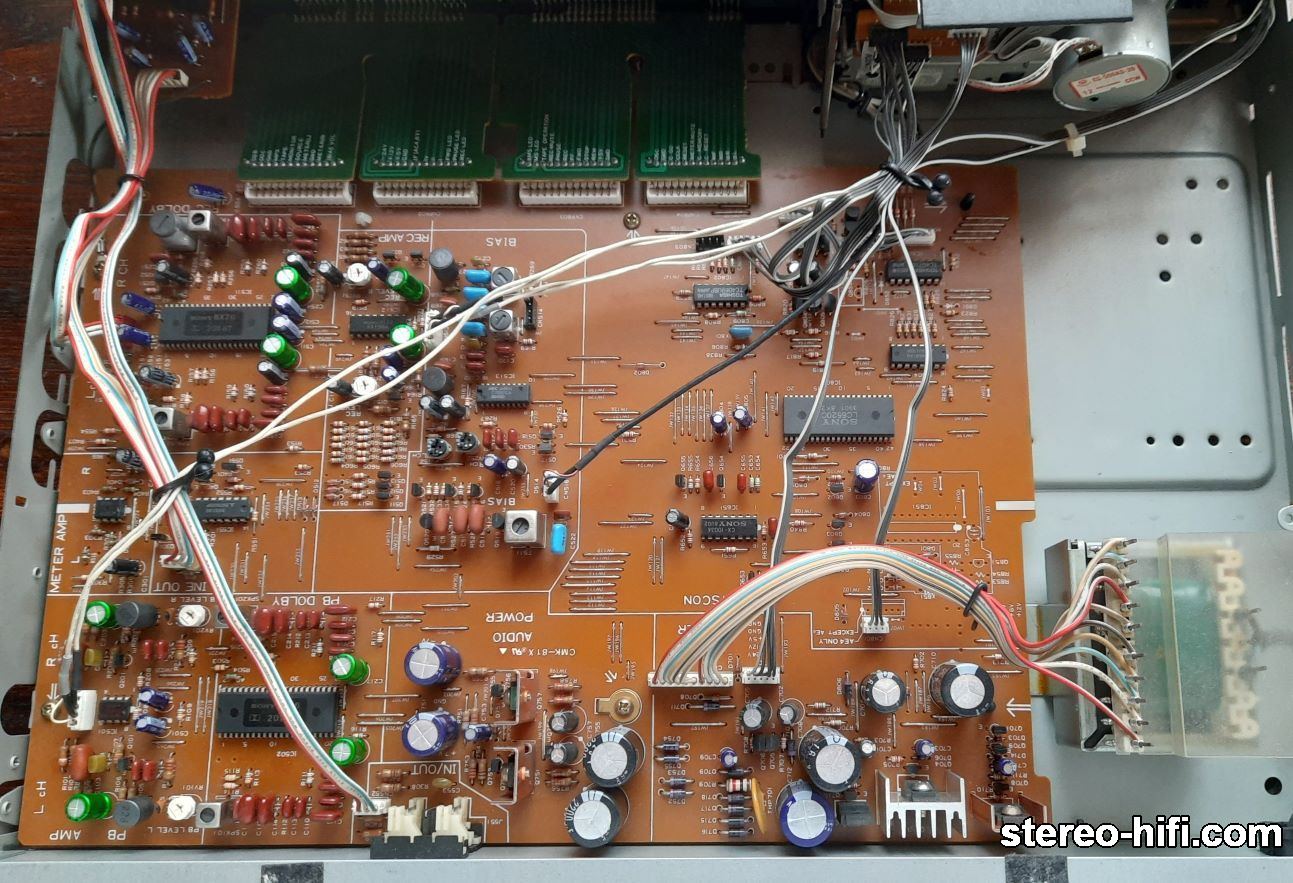 Admin sherlock Opublikowano 19 Listopada 2017 Admin Opublikowano 19 Listopada 2017 Onkyo Integra TA-2350 Dane techniczne: Sound heads: 3, 1x Rec / Play separately Special Hardpermalloy, 1x erase head (ferrite head) Engines: 1x DC servo rotor, 2x DC rotor Fluctuation : 0.04% (WRMS) Band types: Normal I, CrO2 II, Metal IV, Frequency response: 20 - 18,000 Hz (30 - 17,000 Hz ± 3 dB) for normal band 20-19,000 Hz (30-18,000 Hz ± 3 dB) on chrome band 20 - 20,000 Hz (30 - 19,000 Hz ± 3 dB) for pure iron strip distortion: Signal to noise ratio: 60 dB (pure iron band, without Dolby) With Dolby B enhancement by 10 dB over 5 kHz and 5 dB at 1 kHz With Dolby-C improvement by 20 dB at 5 kHz Auto reverse: no Title search: yes Dolby: B / C MPX filter: yes Dimensions: 43.5 x 13.2 x 36.6 cm (WxHxD) Weight: 5,8 Kg Power consumption: 220 V, 50 Hz, 34 Watt Original price approx.: 800 DM Year of manufacture: 1986 Made in: Osaka, Japan Color: black or silver Remote control Zakup wiadomo gdzie i wiadomo u kogo. Kupiony trochę z nudów by pogrzebać sobie w jakiejś maszynce, no i chciałem mieć srebrnego z tej serii. Przyszedł oczywiście utytłany jak siódme nieszczęście. Ktoś przede mną na klawiszu REC flamastrem wymalował wielką czarną kropkę, a na dwóch klawiszach przykleił folię samoprzylepną. Było zabawy w czyszczenie i odklejanie. Nie miał kabla, więc ciężko było na początku stwierdzić ile w nim życia pozostało. Typowo dla tego okresu Onkyo stosowało specjalną puszkę z tworzywa do podłączania napięć niebezpiecznych. Puszka ta znajduje się pod płytką procesora sterowania.