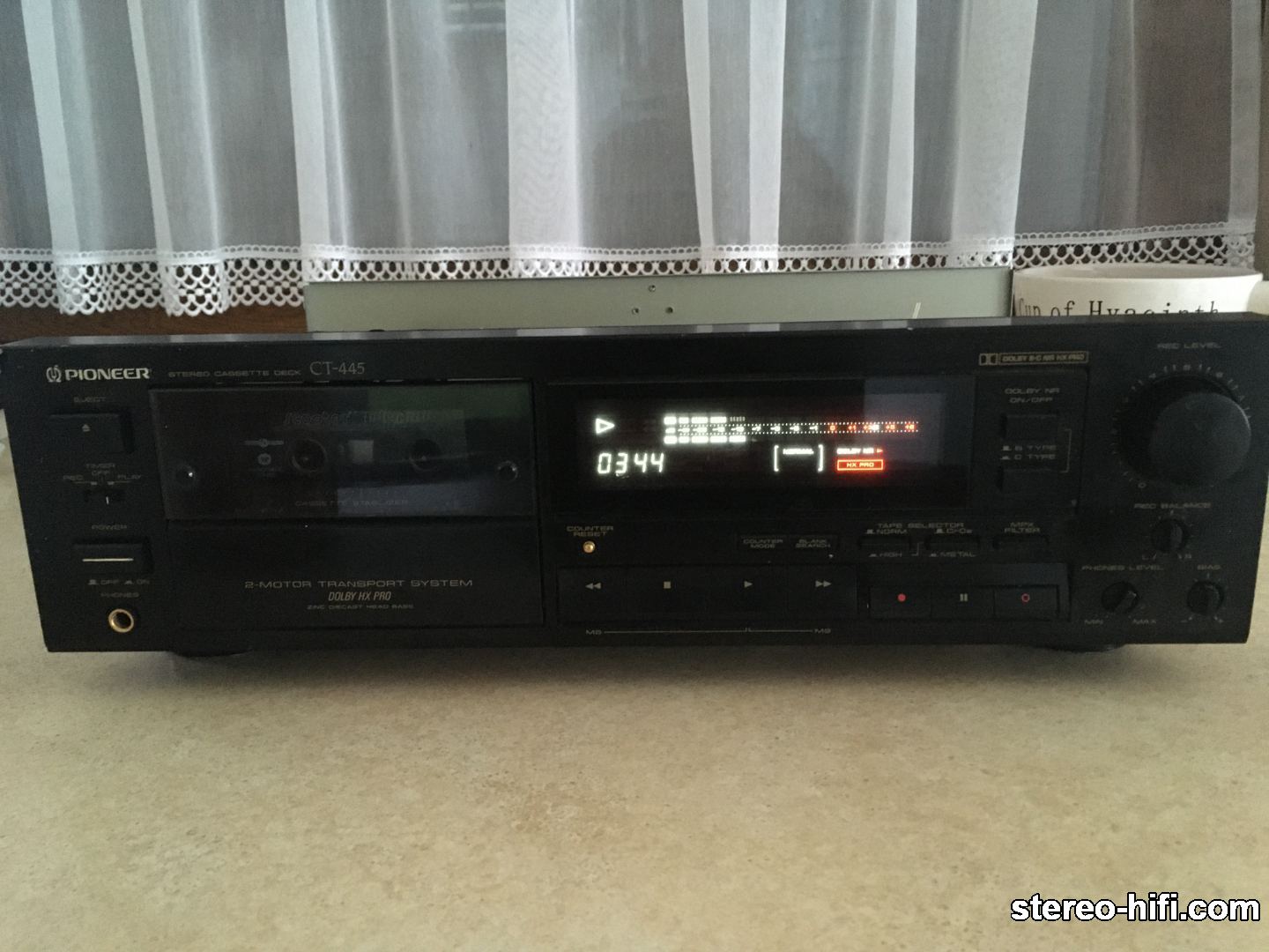 Upiorek Opublikowano 2 Lipca 2017 Opublikowano 2 Lipca 2017 Pioneer CT-445 Zdjęcie zapożyczone z netu, jak tylko będę mógł to zrobię mojemu egzemplarzow Dane techniczne : (z hifi-wiki.de ) Baujahre: 1989 Leistungsaufnahme: 17 W Abmessungen: 420 x 130 x 322 mm (B x H x T) Gewicht: 4,9 kg Tonköpfe: 2 (1 x Hartpermalloy-Aufnahme/Wiedergabekopf;1 x Ferrit-Löschkopf) Motoren: 2 (1 x Gleichstrom-Servomotor für Tonwelle; 1 x Gleichstrom-Motor zum Spulen) Gleichlaufschwankungen: 0,052% Bandarten: Fe, Cr und Me Frequenzgang: (± 6 dB; -20dB Aufnahme) Normalband 25 bis 16000 Hz Chromband 25 bis 17000 Hz Metallband 25 bis 18000 Hz Klirrfaktor: < 0,7% (0dB) Signalrauschabstand: Ohne Rauschuntersrückung > 58 dB