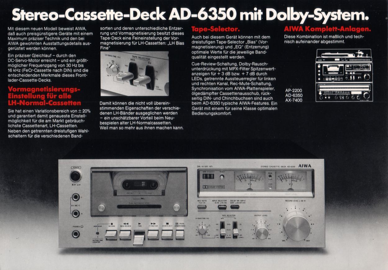 Admin sherlock Opublikowano 27 Maja 2018 Admin Opublikowano 27 Maja 2018 Aiwa AD-6350 Kupiło mi się kiedyś przypadkiem. Ma mały niedostatek w postaci braku przycisku włączenia, ale jakoś to dorobię. Zaskoczeniem w tak prostym decku jest wyprowadzona na zewnątrz regulacja biasu. Środek wygląda dość typowo jak we wszystkich prawie vintage'owych magnetofonach. Dolby stanowią dwie pionowe płytki umieszczone na płycie głównej. 3